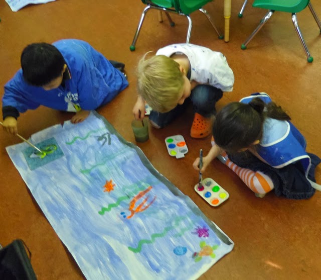 They applied their learning by painting an ocean mural. They had the option to paint free hand or sue stencils - they chose both.